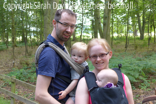 After we had had a bite to eat (well Damian and Daniel did - disappointingly there wasn't a vegetarian option available nor was the cafe open for me to buy something) we had two tired children on our hands so we decided to pop them in the carriers and take a walk around the Enchanted Forest.